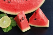 Mnóstwo klina arbuzowego na drewnianej powierzchni.