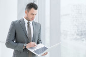 Zdjęcie "młody człowiek w garniturze z laptopa" może być wykorzystywane do celów osobistych i komercyjnych zgodnie z warunkami zakupionej licencji Royalty-free. Obraz jest dostępny do pobrania w jakości wysokiej rozdzielczości do 5760x3840.