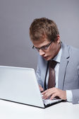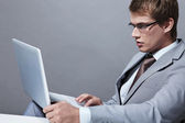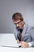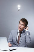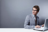 młody człowiek w garniturze spoczywa w miejscu pracy