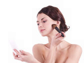 Zdjęcie "Młoda kobieta nakładająca makijaż" może być wykorzystywane do celów osobistych i komercyjnych zgodnie z warunkami zakupionej licencji Royalty-free. Obraz jest dostępny do pobrania w jakości wysokiej rozdzielczości do 5760x3840.
