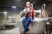 Zdjęcie "Poważny młody specjalista od montażu mebli w odzieży roboczej siedzi na podłodze przy niedokończonym krześle i patrzy na ciebie w nowym mieszkaniu lub studio" może być wykorzystywane do celów osobistych i komercyjnych zgodnie z warunkami zakupionej licencji Royalty-free. Obraz jest dostępny do pobrania w jakości wysokiej rozdzielczości do 5760x3840.