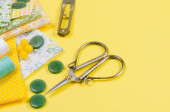 Zdjęcie "Zestaw niebieskich nici do szycia tkanin, guzików i akcesoriów na białym tle. Kompozycja płaska z innymi wyrobami do szycia." może być wykorzystywane do celów osobistych i komercyjnych zgodnie z warunkami zakupionej licencji Royalty-free. Obraz jest dostępny do pobrania w jakości wysokiej rozdzielczości do 5760x3840.