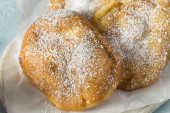 Domowej roboty zdrowe śniadanie Ebelskivers z cukrem pudrem