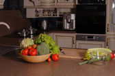 nowoczesna kuchnia wnętrz z świeżych warzyw na blacie kamień naturalny