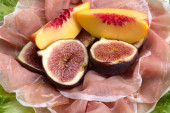 Świeże figi; Szynki i potłuczone kawałki chleba spichlerz na kwadrat niebieski pl