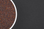 Soczewica w szklanej misce. Widok z góry zdjęcie soczewicy na ciemnoszarym tle. Odizolowane zdjęcie z bliska