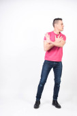 Atrakcyjny model męski z krótkimi włosami pozujący w studio na odosobnionym tle. Styl, trendy, koncepcja mody.