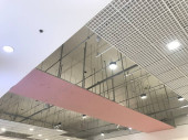 Zdjęcie "Gipsowy sufit podwieszany i zatoczki z płyt gipsowo-kartonowych do baru i restauracji z aluminiową ramą i kanałami" może być wykorzystywane do celów osobistych i komercyjnych zgodnie z warunkami zakupionej licencji Royalty-free. Obraz jest dostępny do pobrania w jakości wysokiej rozdzielczości do 5760x3840.