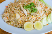 Krab smażony ryż, smażony ryż tajski styl kulinarny, tajski