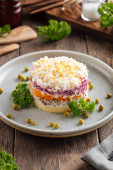 Odizolowana płyta rosyjskiej sałatki świątecznej olivier