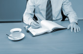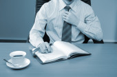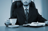 młody biznesmen, pracuje w biurze, w jego miejscu pracy.