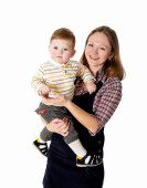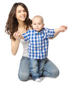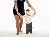 małe dziecko uczy się chodzić z rodzicem