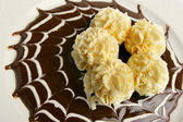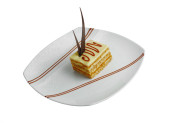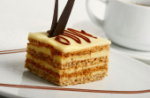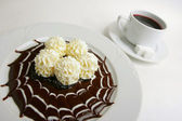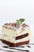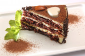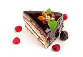 kawałek ciasta z orzechami, pokryte lukierze czekoladowym