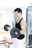 hantle człowieka w siłowni treningu bicepsów fitness