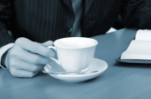 młody biznesmen, pracuje w biurze, w jego miejscu pracy.