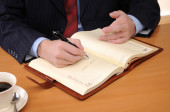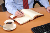 młody biznesmen, pracuje w biurze, w jego miejscu pracy.