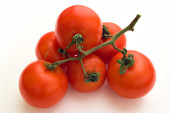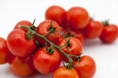 Dojrzałe, świeże, czerwone pomidory na grubej osnowie