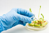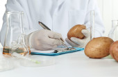 ręce, kontrola czerwone ziemniaki w laboratorium phytocontrol