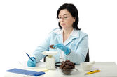ekspert czerwone ziemniaki w laboratorium pomiarowe
