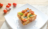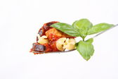 strzał porcji pomidorów scheda chleb pudding z widelcem