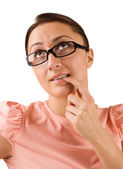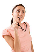młoda kobieta gospodarstwa wizytówkę. skupić się na strony z karty