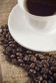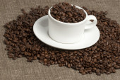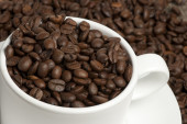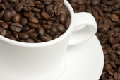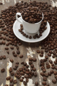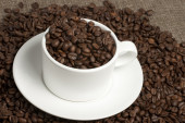 kubek biały na zwolnieniu i kawa