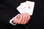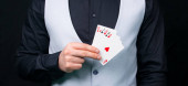mężczyzna rzucanie karty na szarym tle