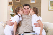 Zdjęcie "młody ojciec z córką w domu w salonie" może być wykorzystywane do celów osobistych i komercyjnych zgodnie z warunkami zakupionej licencji Royalty-free. Obraz jest dostępny do pobrania w jakości wysokiej rozdzielczości do 5760x3840.