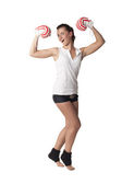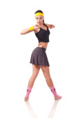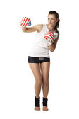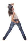 młoda brunetka dziewczyna pozuje do zdjęć i dotykając jej piersi