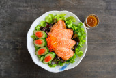 Zdjęcie "Pyszny obfity lunch, smażony kawałek pstrąga i mieszanka różnych rodzajów sałatki warzywnej, obiad ze zdrową czerwoną rybką" może być wykorzystywane do celów osobistych i komercyjnych zgodnie z warunkami zakupionej licencji Royalty-free. Obraz jest dostępny do pobrania w jakości wysokiej rozdzielczości do 5760x3840.