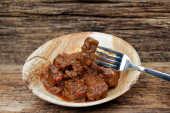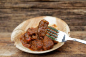 smacznie przygotowane z niskotemperaturową metodą gotowania i podawane w misce z liśćmi palmy