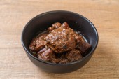 Zdjęcie "smacznie przygotowane z niskotemperaturową metodą gotowania i podawane w misce z liśćmi palmy" może być wykorzystywane do celów osobistych i komercyjnych zgodnie z warunkami zakupionej licencji Royalty-free. Obraz jest dostępny do pobrania w jakości wysokiej rozdzielczości do 5760x3840.