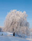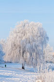 lasy w śniegu. chłodne zimowe wieczory na Syberii. drzewa w śniegu.
