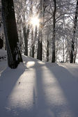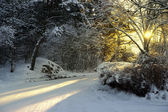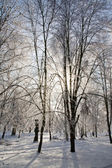 lasy w śniegu. chłodne zimowe wieczory na Syberii. drzewa w śniegu.
