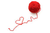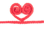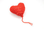 Amigurumi serce wiszące na białym tle. Koncepcja czułej przyjaźni i miłości. Międzynarodowy Dzień Przyjaźni