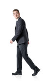 obraz młodego biznesmena spaceru, na białym tle biały.