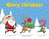 pozdrowienie na Boże Narodzenie santa niedźwiedzia w kominie