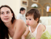 młoda matka z córką w domu