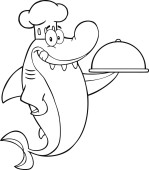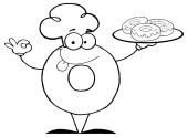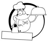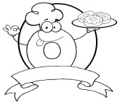 zarys charakteru pączek w kapeluszu, szefa kuchni i obsługujących pączki na pusty transparent i koło