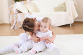 dwie Siostrzyczki razem gra na piętrze pokój dzienny