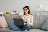 Czas wolny w domu, relaks i odpoczynek przy gorącym napoju podczas samodzielnej izolacji