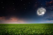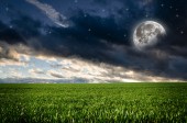 Księżyc w nocy i pola