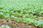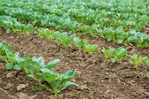 młody sałatka ekologicznej uprawy w ogrodzie warzyw