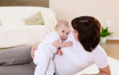 młody szczęśliwą rodzinę, zabawy z dzieckiem w salonie