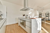 Zdjęcie "Otwarta kuchnia koncepcyjna i jadalnia" może być wykorzystywane do celów osobistych i komercyjnych zgodnie z warunkami zakupionej licencji Royalty-free. Obraz jest dostępny do pobrania w jakości wysokiej rozdzielczości do 5760x3840.