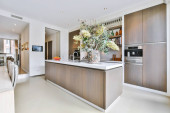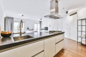Kuchnia licznik z umywalką w nowoczesnym mieszkaniu