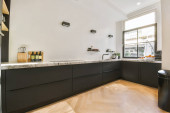 Zdjęcie "Kuchnia licznik z umywalką w nowoczesnym mieszkaniu" może być wykorzystywane do celów osobistych i komercyjnych zgodnie z warunkami zakupionej licencji Royalty-free. Obraz jest dostępny do pobrania w jakości wysokiej rozdzielczości do 5760x3840.