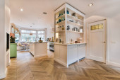 Zdjęcie "Otwarta kuchnia koncepcyjna i jadalnia" może być wykorzystywane do celów osobistych i komercyjnych zgodnie z warunkami zakupionej licencji Royalty-free. Obraz jest dostępny do pobrania w jakości wysokiej rozdzielczości do 5760x3840.
