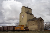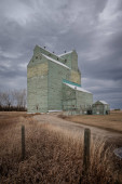 Brant, Alberta - 7 maja 2021: Stara winda zbożowa Alberta Pszenica Brant.