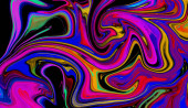 Neonowy, kolorowy psychodeliczny, falujący wzór. Żywe zakrzywione linie tło w żółtym różowym zielonym i niebieskim na ciemnym tle